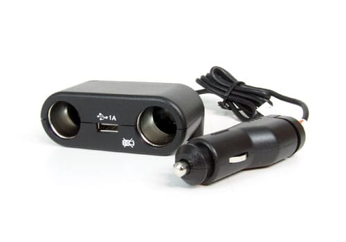 Carregador de isqueiro 12-24v, com tomada dupla, para alimentação em simultâneo de dois aparelhos no carro. Acessório essencial para carregar dois dispositivos através do carregador de isqueiro do carro, sem precisar de desligar um deles. Tem ainda uma entrada USB para alimentação de dispositivos em que só se tenha cabos com esta ligação (ex. cabos de ligação a PC, telemóveis, etc.).